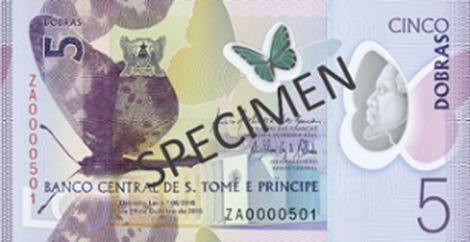 The two lowest note values, 5 and 10 Dobras are on De La Rue’s Safeguard® polymer material, making them very durable whilst ensuring they are highly counterfeit resistant."